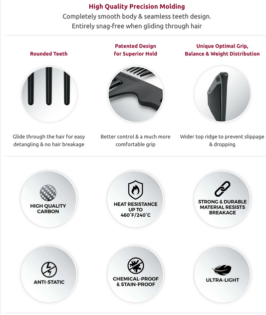 Olivia Garden CarbonLite combs, Metal Tail Teasing (CL-4) snag-free,ultra-light, high heat resist.