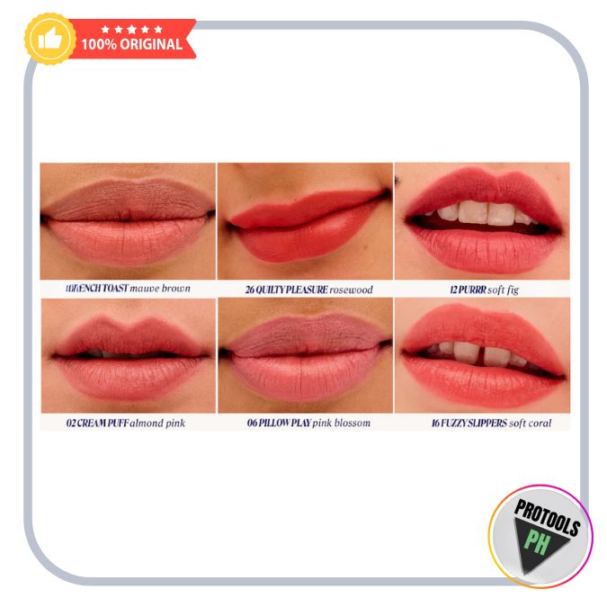 What it is: A matte, longwearing lip tint that gives lips smudge-proof color and moisture for a moisturizing, comfortable feel and soft-blur velvety finish.