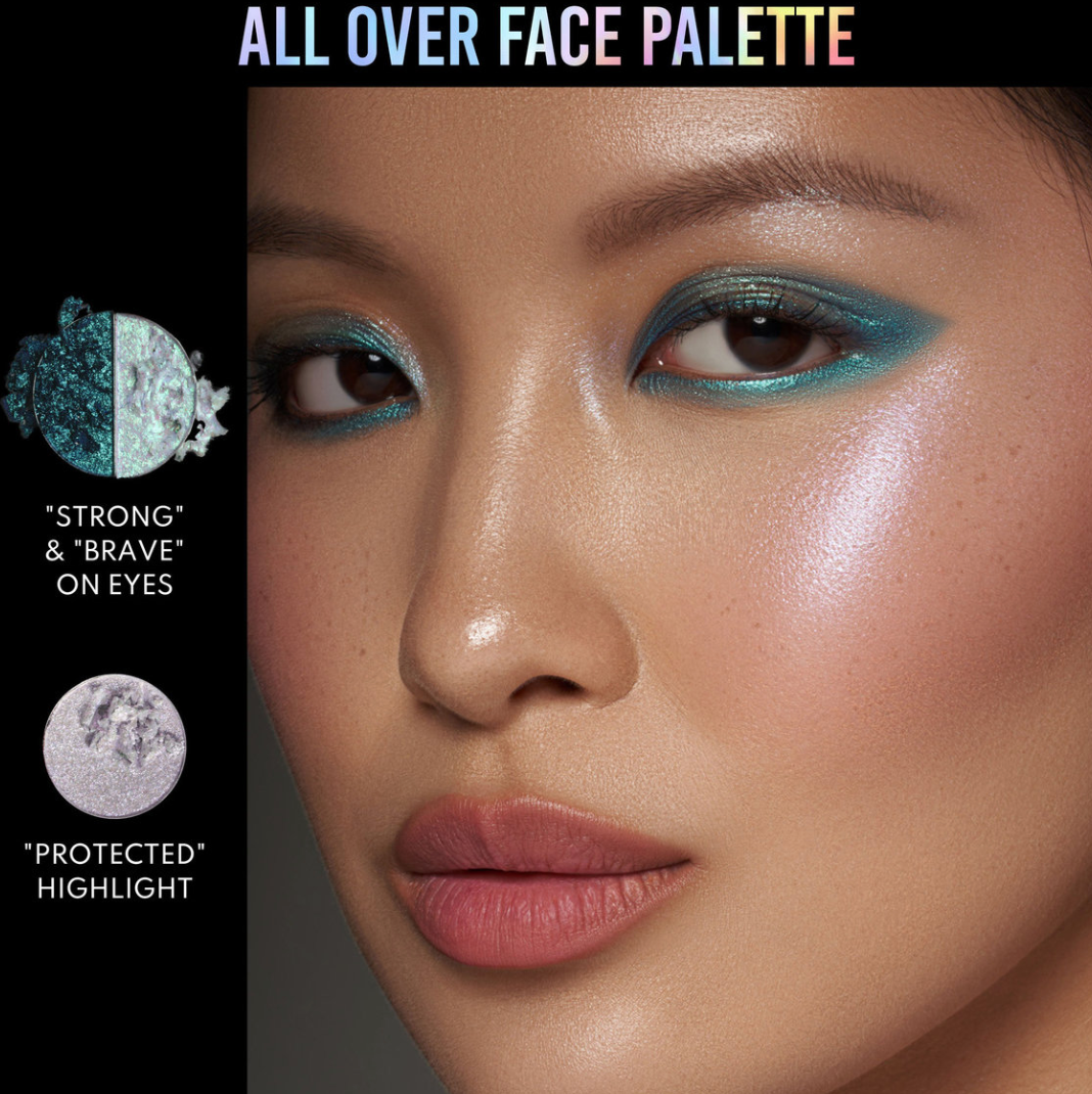 - A limited edition eye and face palette with 18 shades in 7 color-shifting finishes