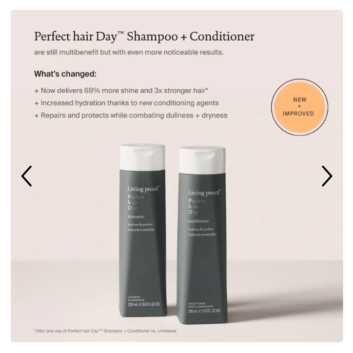 Clinical Results: In a 200-person consumer-use test: - 80% of consumers agreed that their hair feels instantly hydrated after just one use of Perfect Hair Day Shampoo and Conditioner