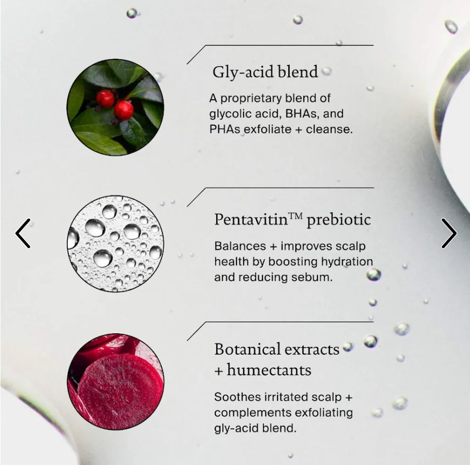 What it is: A skincare-inspired, pre-shampoo scalp treatment formulated to gently exfoliate and visibly reduce dry-scalp flaking, excess oil, and buildup.
