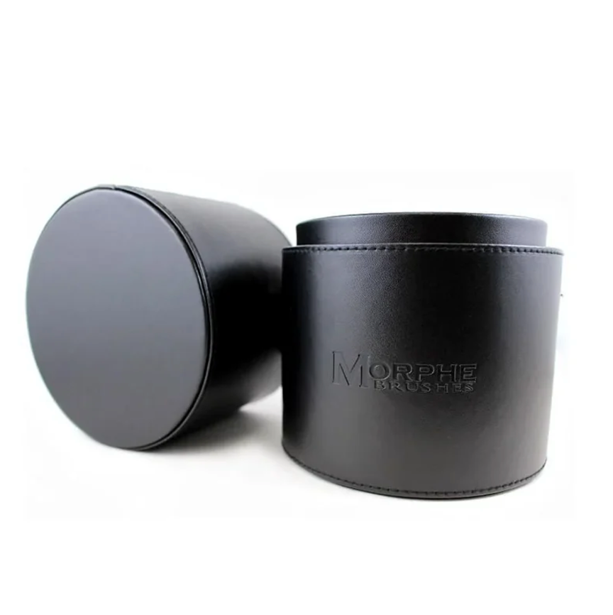 This stylish mega-sized case is big enough to keep even a large brush collection with a soft and sturdy faux leather covering that maintains its shape and is great for travel. The top snaps on and off easily and keeps the brushes in pristine shape and ready for use.