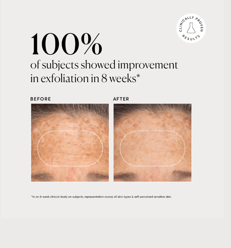 Our leave-on BHA exfoliant is formulated with an efficacious level of encapsulated salicylic acid, plus bioactive fruit acids, and is clinically proven to reduce the appearance of pores, smooth and even skin tone, revealing more radiant, brighter looking skin.*