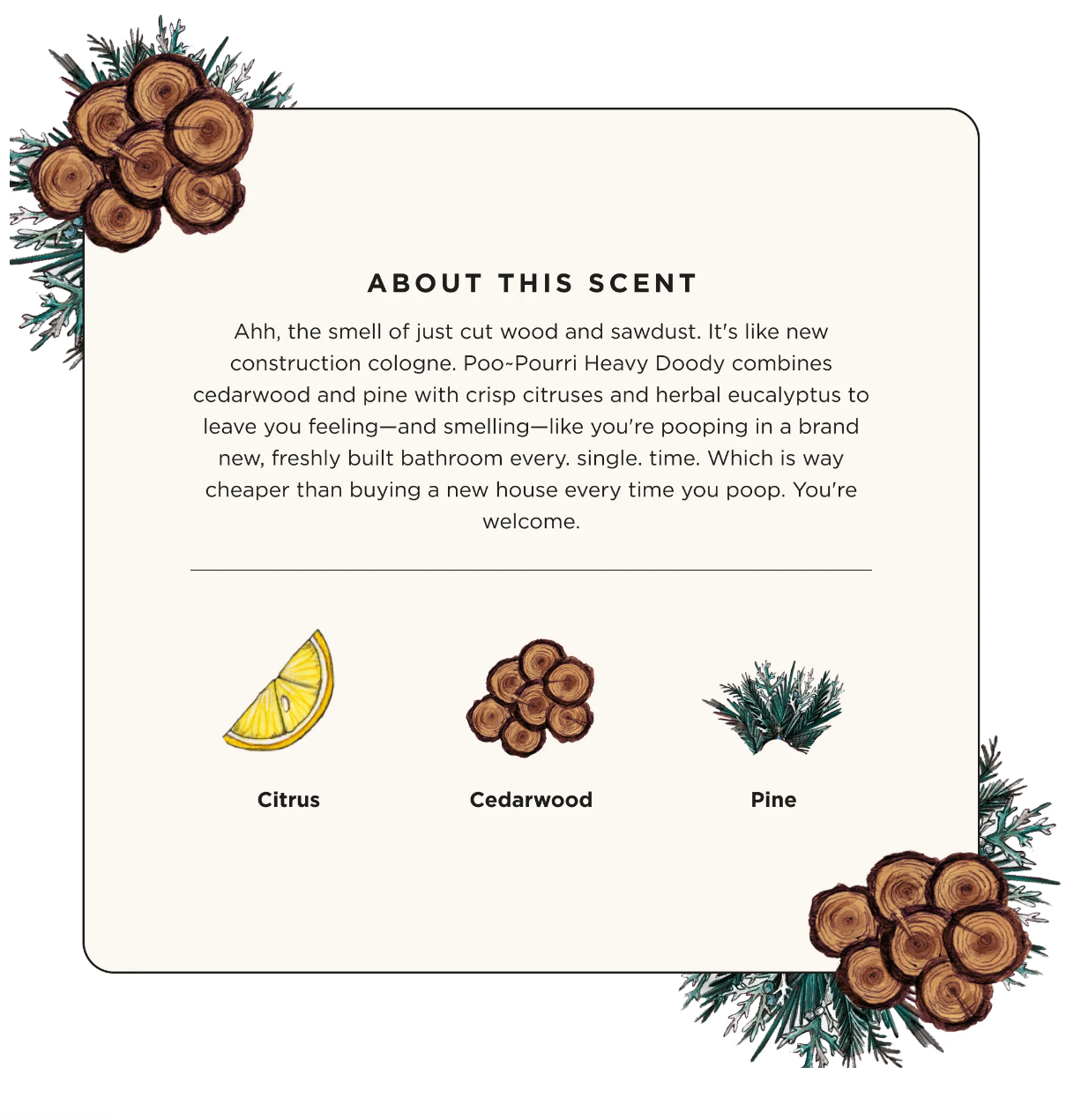 - Smells Amazing.Made with essential oils and leaves the toilet smelling like cedarwood and pine paired with herbal eucalyptus