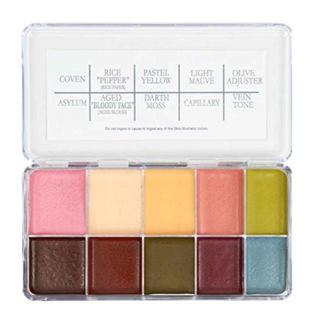 Skin Illustrator American Horror Palette was created for American Horror Story’s Makeup Dept. Head, Eryn Krueger Mekash. This unique palette contains two new colors specifically designed by her makeup crew for the AHS series. Coven and Asylum were added to the palette to meet the demanding needs of AHS. From beauty and old age to bloody zombies and witches, the American Horror Palette is an integral part of this award winning FX Network show.