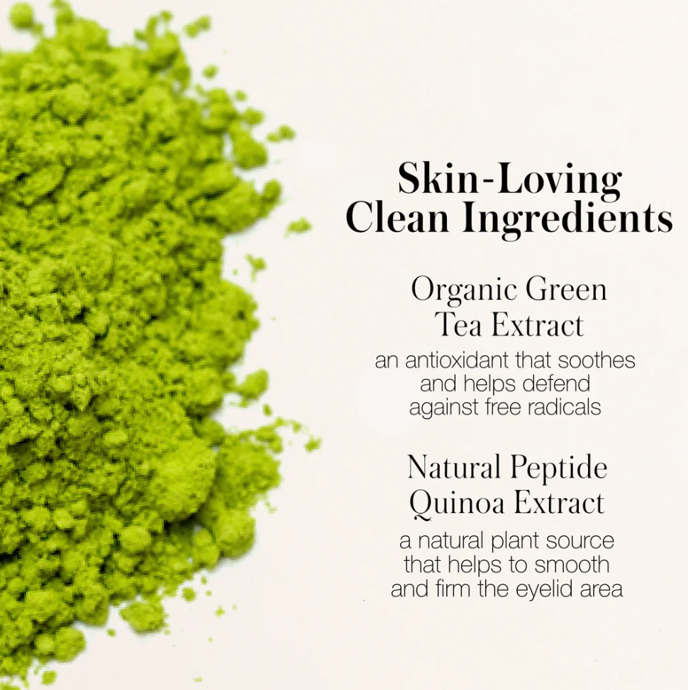 Formulated with organic green tea and natural peptide quinoa extracts, it nourishes and smooths the delicate eye skin with each wear.